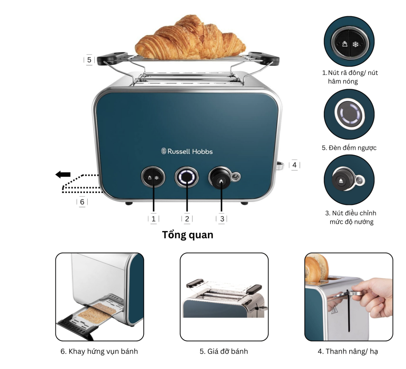 - Máy Nướng Bánh Mì 2 Khe Russell Hobbs Distinctions 26432-56 1600W có thiết kế màu Titanium mang đến vẻ đẹp đặc biệt và sang trọng là gam màu trung tính mang hơi hướng phong cách hiện đại. Màu sắc trung tính không có nhiều ưu thế về mặt thu hút nhưng lại có xu hướng duy trì cảm nhận lâu, đem lại sự rung cảm về cái nhìn và không khiến người nhìn mệt mỏi. Có thể phối hợp cùng các thiết bị màu sắc đậm để tạo nên cá tính của không gian hiện đại. Trang bị phụ kiện, tính năng an toàn Đặc biệt, máy nướng bánh mì 2 khe Russell Hobbs Distinctions cũng được trang bị khay hứng vụn bánh giúp bạn giữ vệ sinh gọn gàng trên bề mặt bếp. Có các tính năng an toàn, bao gồm chức năng tự động ngắt khi nhiệt độ quá cao và khóa an toàn để tránh việc mở máy trong quá trình nướng. Bạn có thể yên tâm sử dụng máy mà không cần lo lắng về an toàn. Với độ dài dây điện 91cm, máy nướng bánh mì 2 khe Russell Hobbs Distinctions mang lại sự linh hoạt trong việc đặt máy ở vị trí phù hợp trong không gian bếp của bạn. Kết hợp tinh tế giữa chất liệu thép không gỉ, thiết kế thông minh, tiện ích với khả năng nướng bánh mì đa dạng và dễ dàng điều chỉnh nhiệt độ, máy nướng bánh mì này là lựa chọn hoàn hảo cho những ai yêu thích bánh mì tươi ngon và muốn có một sản phẩm chất lượng trong bếp của mình. RUSSELL HOBBS VIỆT NAM CAM KẾT: