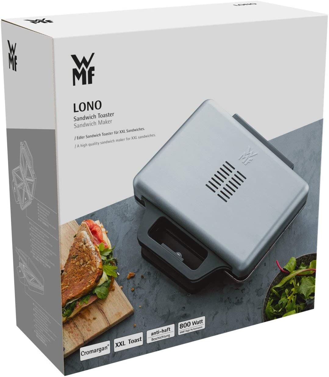 MÁY NƯỚNG BÁNH MÌ SANDWICH WMF LONO Máy nướng bánh mì sandwich WMF Lono giúp bạn có một món ăn nhẹ hoặc ăn sáng ngon miệng với thời gian nhanh chóng. THÔNG TIN CHUNG -