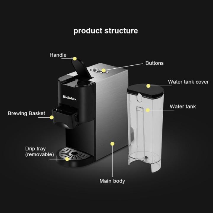 - Kích thước tách có thể điều chỉnh với hai nút Espresso (80ml) và Lungo (150ml) có thể lập trình làm cho máy pha cà phê của BioloMix trở thành một máy pha cà phê tuyệt vời cho tất cả các nhu cầu cà phê của bạn. Đổ đá lên trên để tạo ra đồ uống cà phê đá yêu thích của bạn. Thiết kế nhỏ gọn, hiện đại