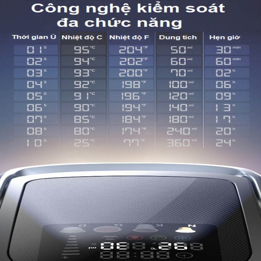 - Tích hợp hẹn giờ từ 30 phút đến 24 tiếng