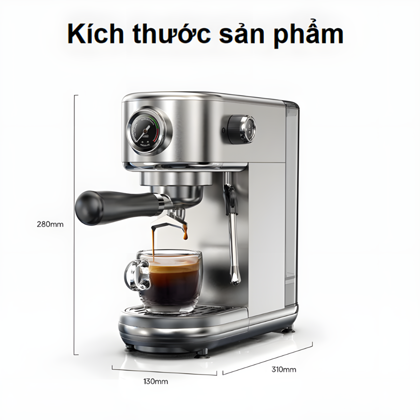 - Tích hợp đồng hồ áp suất kiểm soát shot cafe espresso