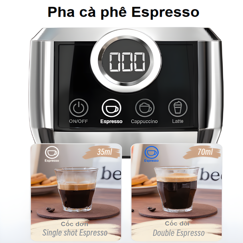 • Chức năng pha cà phê: Cappuccino, Espresso, Latte