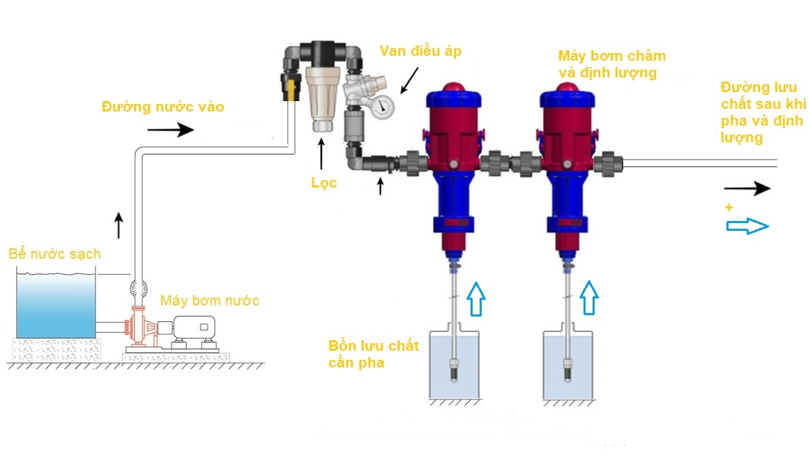 Bơm định lượng hóa chất hiệu Mixtron hay máy pha thuốc thú y tự động, thiết bị châm phân, được lắp đặt trực tiếp trên đường cấp nước, tự hút và pha trộn hóa chất theo tỉ lệ, cho phép người dùng định lượng chính xác và đồng nhất lưu chất.