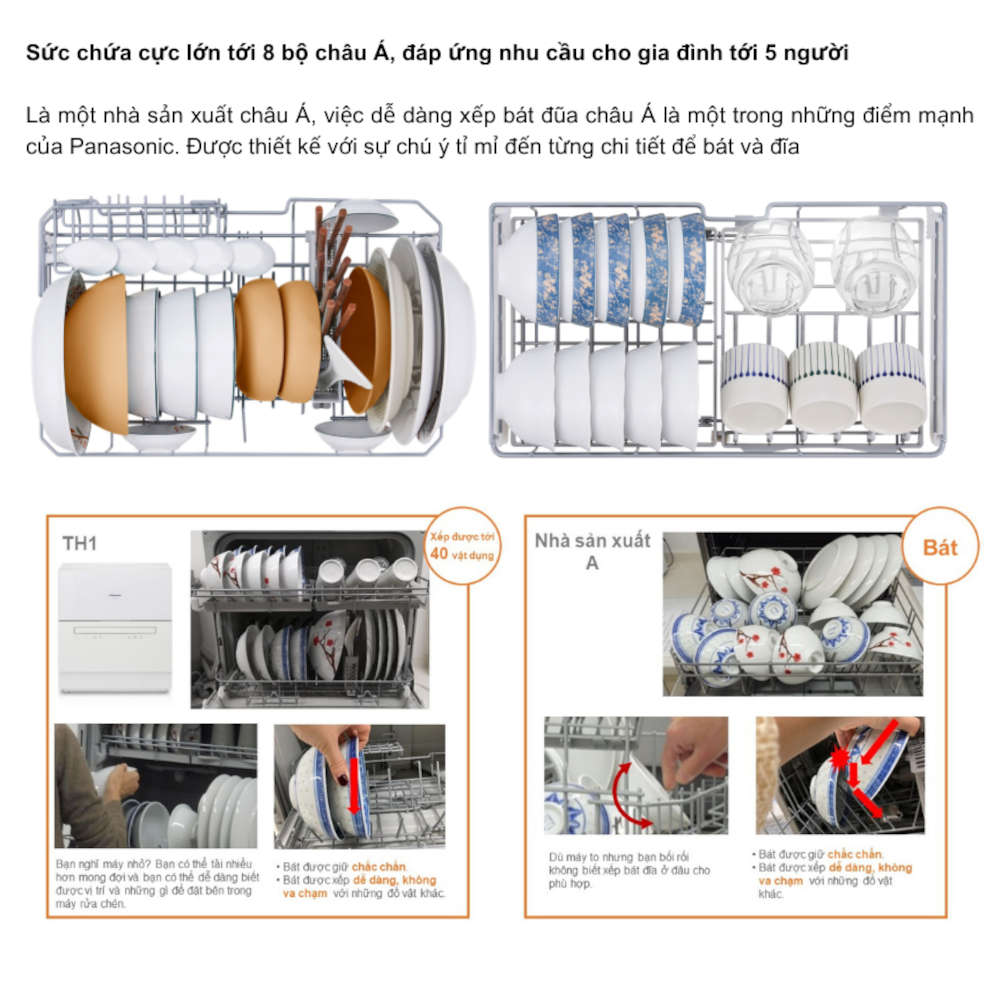 ✨Máy rửa chén bát để bàn Nhật Bản Panasonic NP-TH1WEVN có chức năng sấy khô, bảo hành 12 tháng - Hàng chính hãng