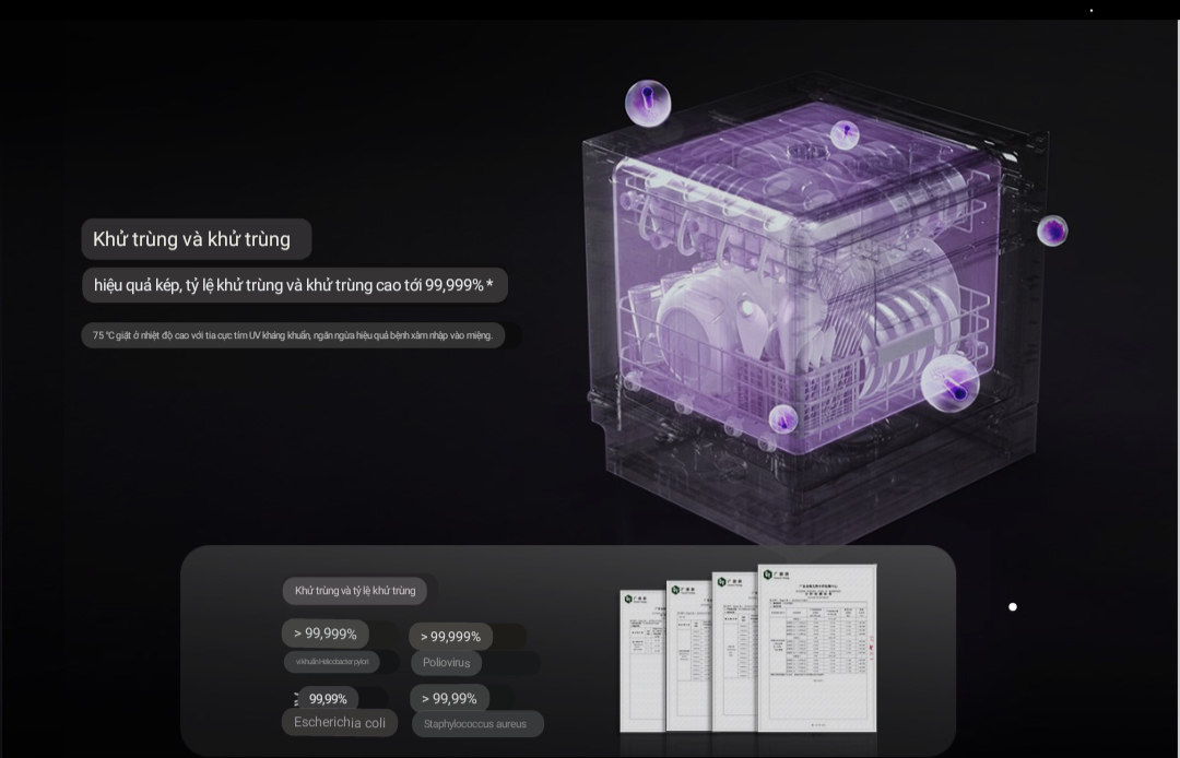 Mua tại TiktokSau thanh công của máy rửa bát xiaomi mijia S1 15 bộ , Xiaomi đã ra mắt Máy rửa bát thông minh Mijia S1 12 bộ. Cánh cửa thông minh có thể tự động đóng mở; cửa sẽ mở ra để đẩy nhanh quá trình làm khô và sau đó đóng lại để bảo vệ bát đĩa sạch khỏi bụi và phấn hoa. Máy rửa bát thông minh có chu trình làm khô bằng không khí nóng, làm khô đĩa bát bằng không khí nóng ở 80 ° C (~ 176 ° F). Xiaomi tuyên bố rằng không khí nóng và cửa tự động mở giúp làm khô bát đĩa của bạn nhanh hơn 40% so với máy rửa bát thông thường. Thêm vào đó, sấy khô bằng không khí nóng ở 72 ° C (~ 162 ° F) mang lại tỷ lệ khử trùng 99,99%. Các Cảm biến và công nghệ AI sẽ phát hiện mức độ bẩn trên bát đĩa trong 10 giây. Điều này cho phép Máy rửa bát đĩa thông minh Mijia S1 chọn chương trình rửa tối ưu một cách thông minh, điều chỉnh thời gian chu trình khi cần thiết. Ngoài ra, bạn có thể chọn chế độ rửa với các cài đặt thời gian, nhiệt độ và cường độ khác nhau. Bạn có thể chọn chế độ của mình trên màn hình điều khiển hoặc thông qua ứng dụng Mihome , điều khiển thiết bị bằng giọng nói. Máy rửa bát Mijia 12 bộ S1 có kích thước 595 x 600 x 525 mm với không gian chứa lớn. 27 tia phun cung cấp công suất lên đến 45.000 Pa để làm sạch hoàn toàn và động cơ biến tần BLDC giảm thiểu tiếng ồn do máy tạo ra.