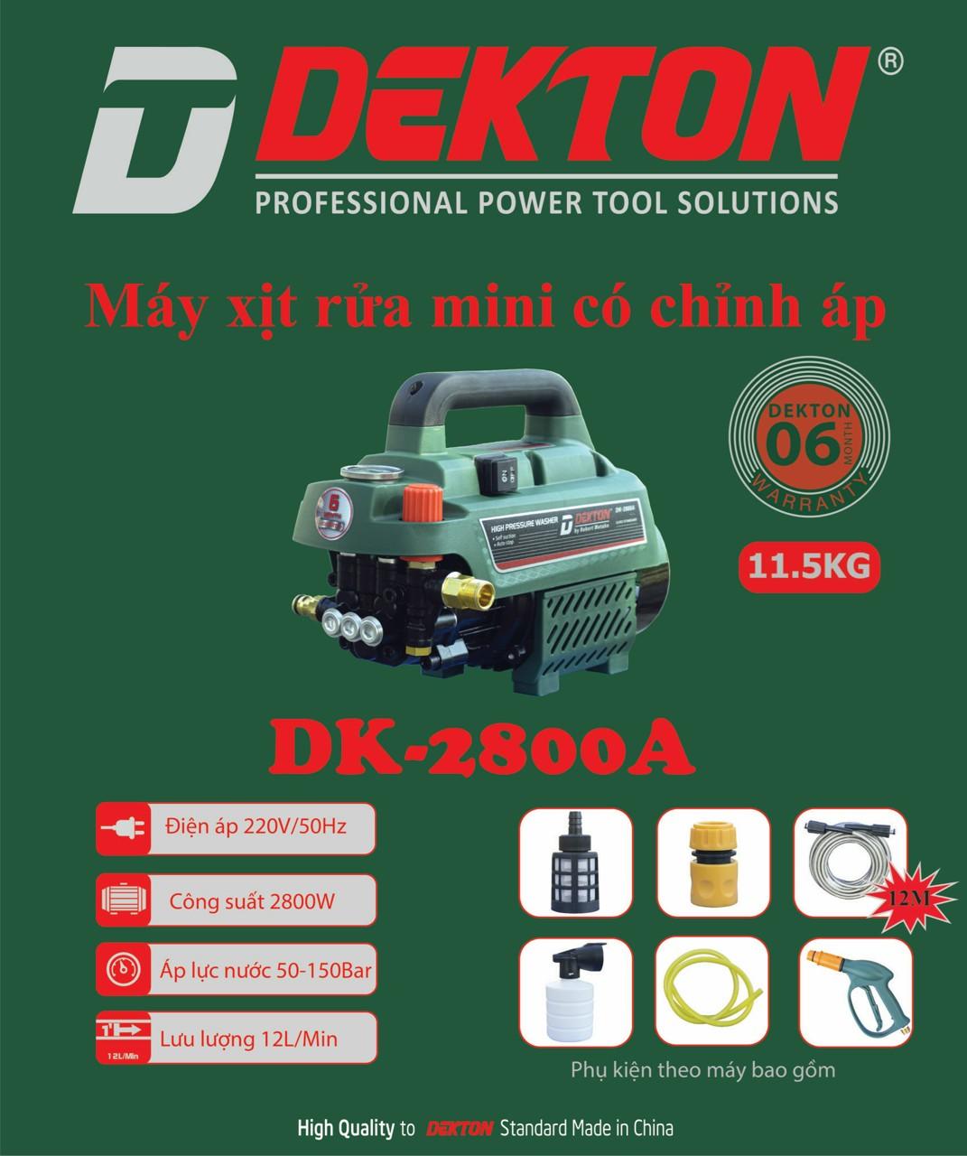 Máy rửa xe Dekton DK-HPW2350 2350W (có chỉnh áp) cho lực phun cực khỏe Máy rửa xe Dekton DK-HPW2350 2350W là máy xịt rửa gia đình có cấu tạo gọn nhẹ, phù hợp với việc