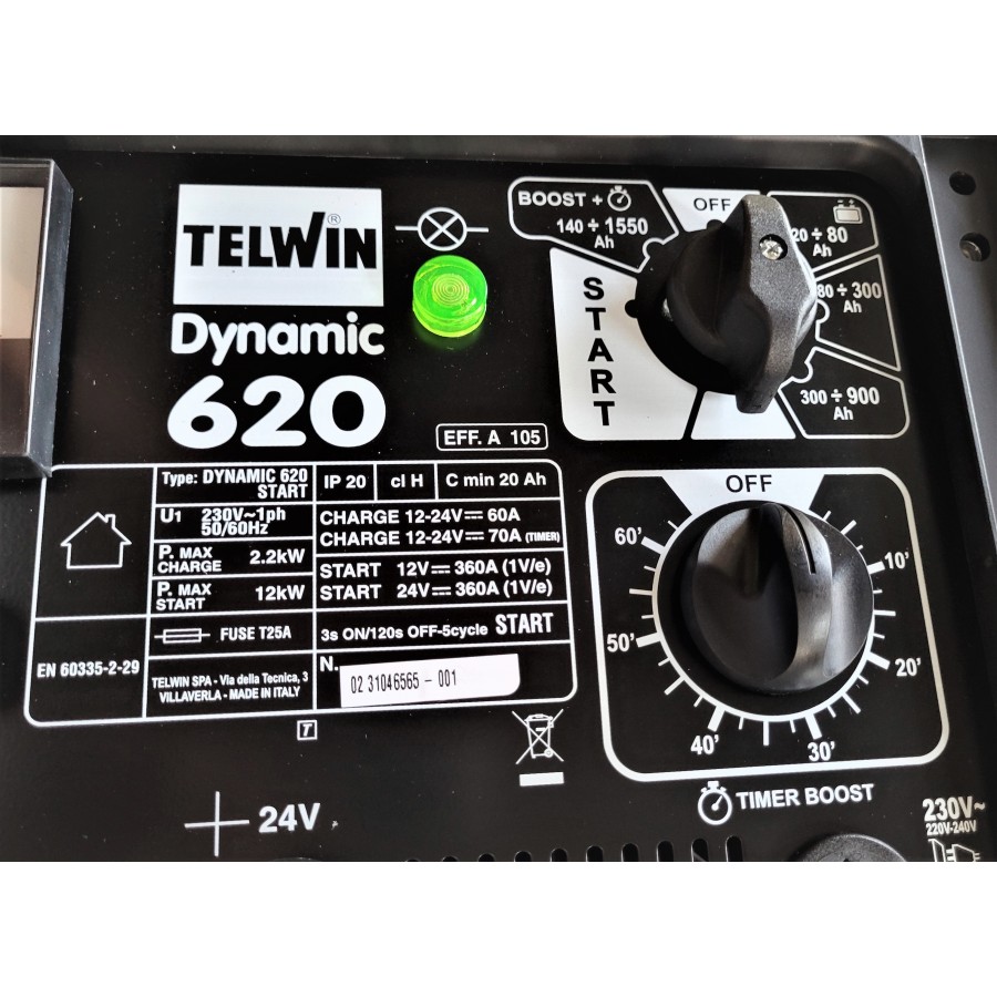 - Máy Sạc & Khởi Động Ắc Quy Telwin DYNAMIC 620 START là bộ sạc dành cho bình ắc quy dòng WET với điện áp 12V/24V. Thích hợp để sạc ắc quy cho ô tô con, xe tải và xe tải nhẹ.