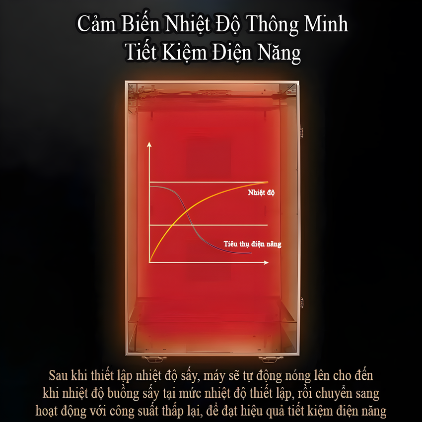 - Chính hệ thống gia nhiệt 360 độ thông minh này giúp thực phẩm được sấy chín đều, ngon và khô nhanh hơn từ 40 đến 50% so với dòng mày thường. Rút ngắn thời gian sấy và tiết kiệm điện năng tiêu thụ đáng kể. Đây chính là điểm khác biệt lớn so với các dòng máy thông thường.