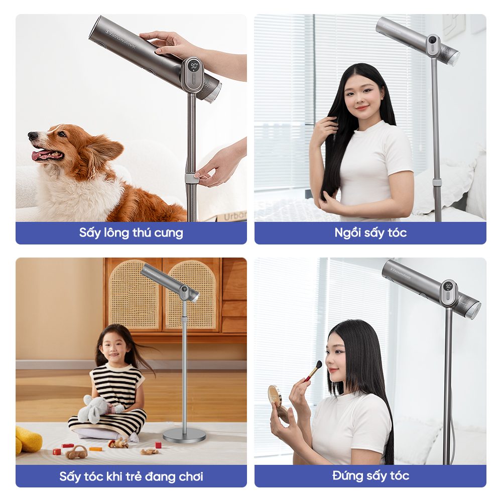 - Dễ dàng điều chỉnh độ cao phù hợp với đối tượng sấy dễ dàng: Nam, nữ, trẻ em hay thú cưng đều dùng được.