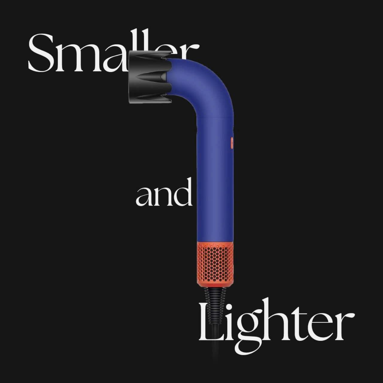 Là dụng cụ làm tóc nhỏ nhất, nhẹ nhất (siêu nhẹ chỉ 325g, nhẹ hơn trọng lượng của một chai keo xịt tóc) và sáng tạo nhất từ trước đến nay của Dyson. Máy sấy tóc chuyên nghiệp Supersonic r nhỏ hơn 30%, nhẹ hơn 20%, và dễ thao tác hơn – mang lại kết quả tóc nhanh khô, mềm mượt, không bị xơ rối, và bóng mượt hơn.