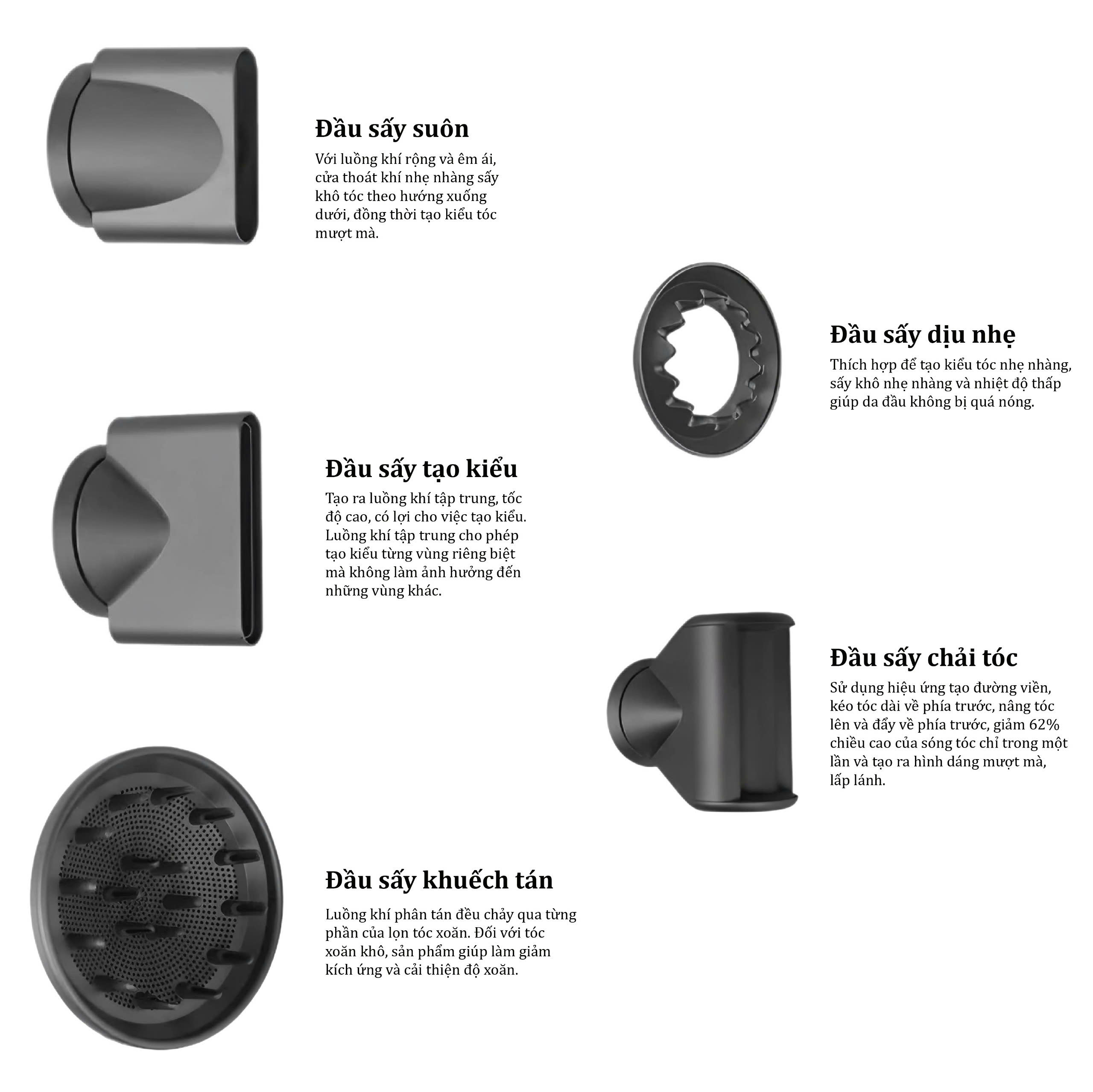 Động cơ không chổi than tốc độ cao 110.000 rpm, tốc độ gió 65m/s, làm khô tóc ngắn chỉ trong 40 giây Cảm biến kiểm soát nhiệt thông minh NTC, kiểm soát nhiệt độ 100