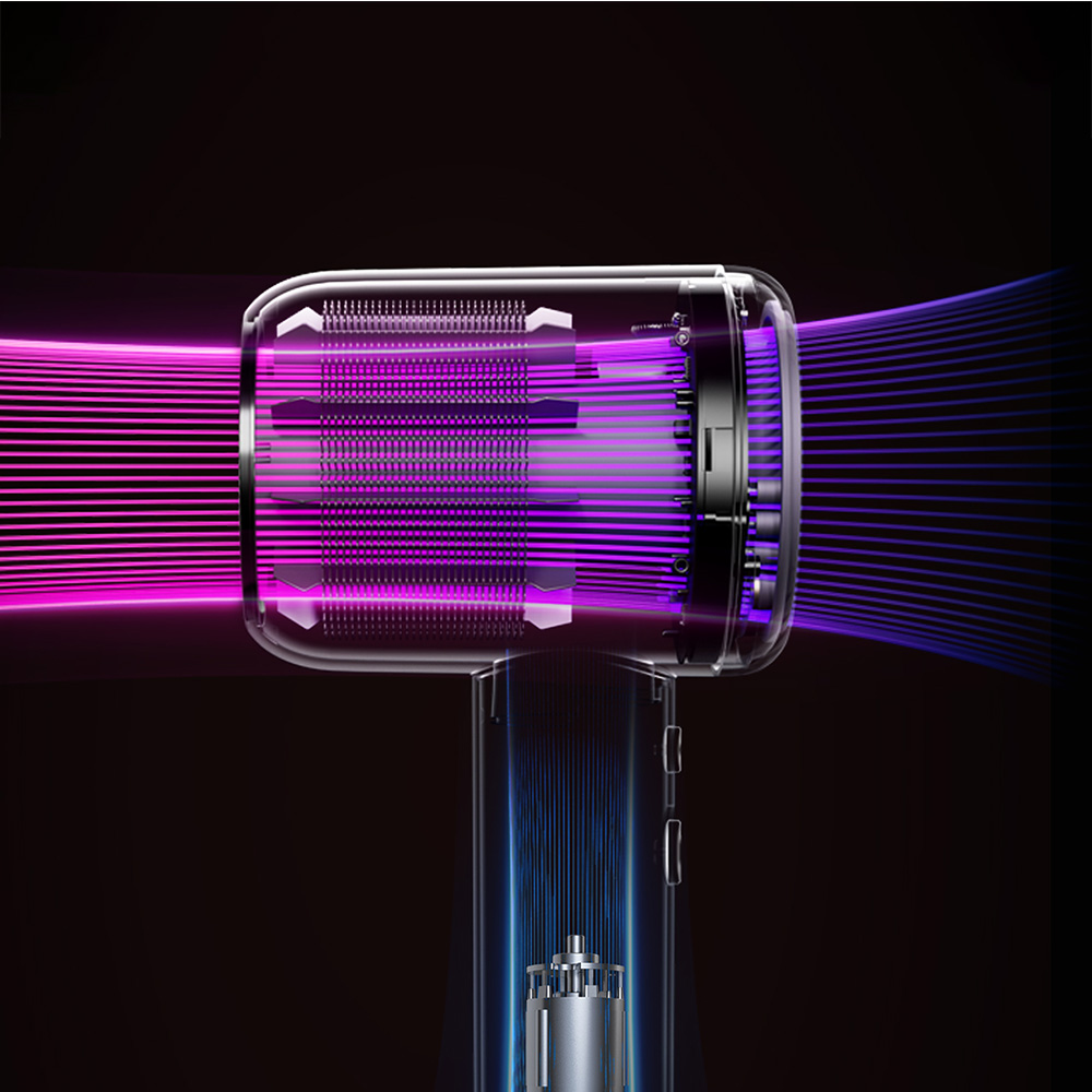 Động cơ không chổi than tốc độ cao 110.000 rpm, tốc độ gió 65m/s, làm khô tóc ngắn chỉ trong 40 giây Cảm biến kiểm soát nhiệt thông minh NTC, kiểm soát nhiệt độ 100