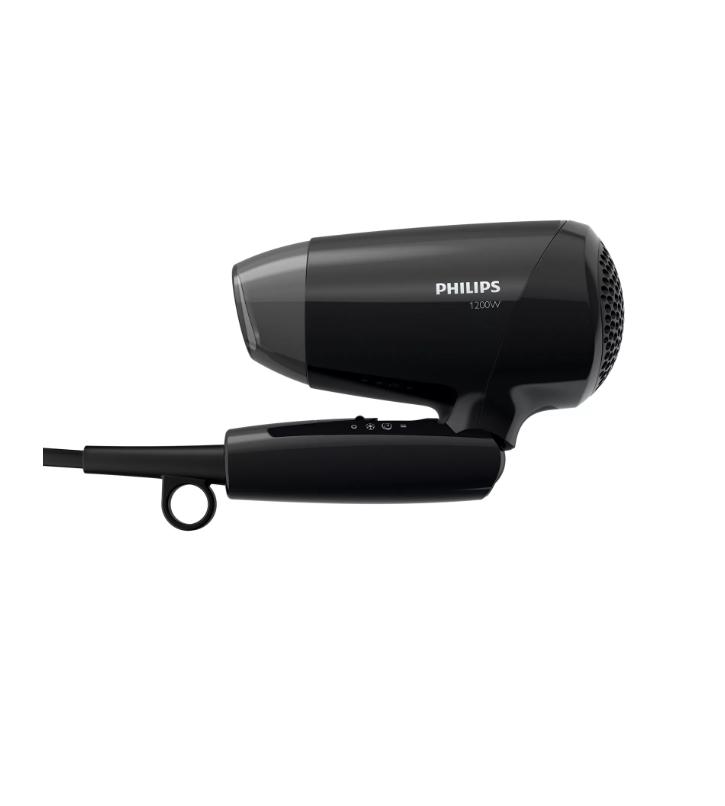 Thiết kế nhỏ gọn với công suất 1200W Máy sấy tóc Philips BH010 sở hữu thiết kế nhỏ gọn, tay cầm của máy có thể gấp gọn, thuận tiện cho vào vali túi xách khi đi