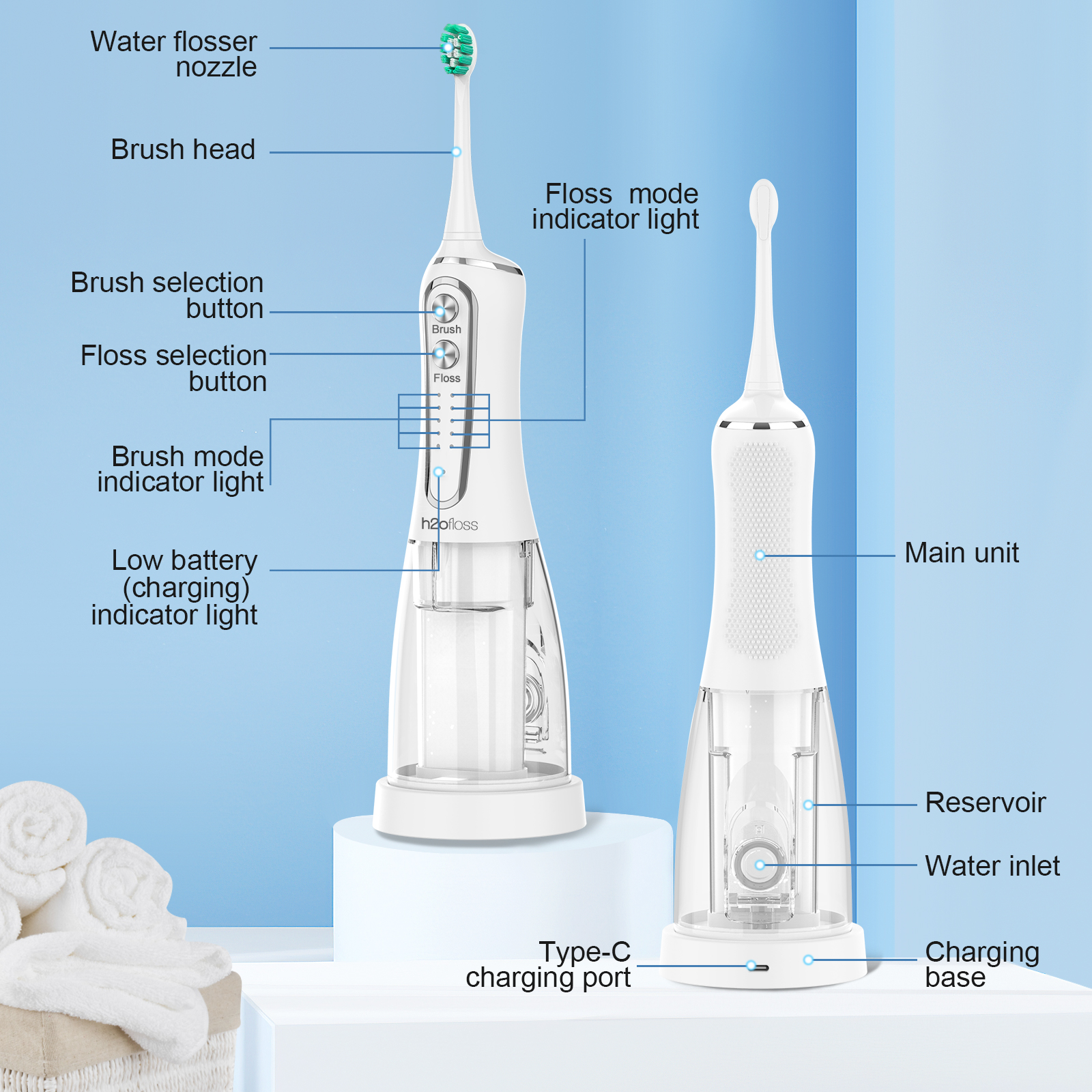Máy tăm nước kết hợp bàn chải điện H2ofloss HF-S01 là một phát minh đầy sự sáng tạo của thương hiệu H2ofloss. Sản phẩm này là sự kết hợp vô cùng lý tưởng của hai sản phẩm chăm sóc răng miệng thiết yếu hiện nay là tăm nước và bàn chải điện. Thiết kế 2 trong 1 tạo sự tiện lợi khi bạn chỉ cần đem 1 máy duy nhất nhưng vẫn đáp ứng đủ nhu cầu làm sạch răng miệng thay vì phải đem theo cả 2 thiết bị như trước.