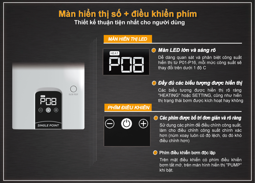 - Sản phẩm duy nhất tại Việt Nam sử dụng công nghệ tự động điều chỉnh công suất, ổn định nhiệt độ mà KHÔNG dùng cảm biến lưu lượng. - Có thể sử dụng với