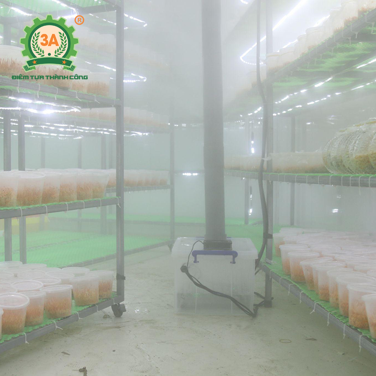 • Tiết kiệm nước vì chỉ một lượng nước nhỏ nhưng tạo được lượng sương lớn phun khắp nhà trồng nấm.
