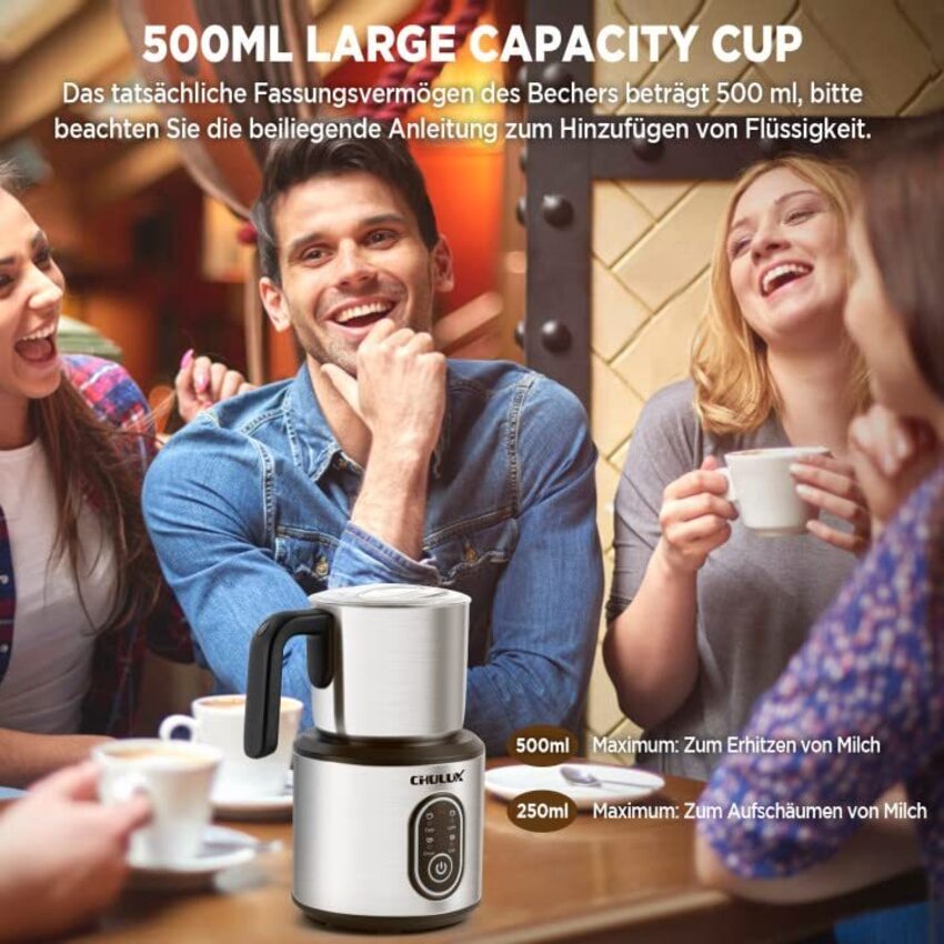 - Máy tạo bọt sữa chuyên nghiệp dùng cho quán 4 trong 1 Chulux JMF-988S là sản phẩm cao cấp chuyên dùng cho quán cà phê, dùng để đánh sữa tạo bọt và pha các loại thức uống nóng lạnh. Máy sở hữu dung tích lớn, tốc độ mạnh, không phát ra tiếng ồn, dung tích lớn, thiết kế sang trọng. Tính năng tạo bọt sữa