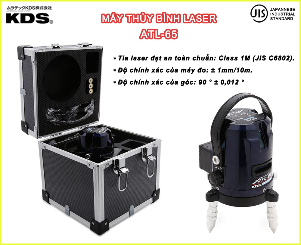 • Máy thủy bình laser 4 tia KDS ATL-65 được hãng KDS sản xuất nên chất lượng đạt tiêu chuẩn Công Nghiệp JIS ( Nhật).