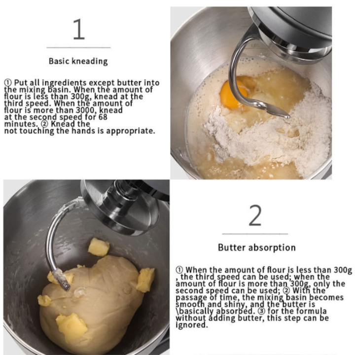 - Mức 1-4 Dùng nhào các loại bột nặng như bánh mì, Nên đánh từ mức thấp nhất rồi chỉnh dần lên mức cao.