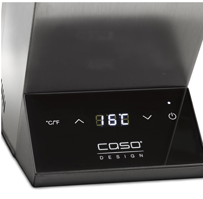 Máy Ướp Lạnh Rượu Caso WineCase One Inox cho phép bạn có thể điều chỉnh nhiệt độ dễ dàng bằng phím cảm ứng điện tử từ 5 – 18 ° C trong các bước 1 ° C ( 41 – 64 ° F trong các bước 1 ° F)
