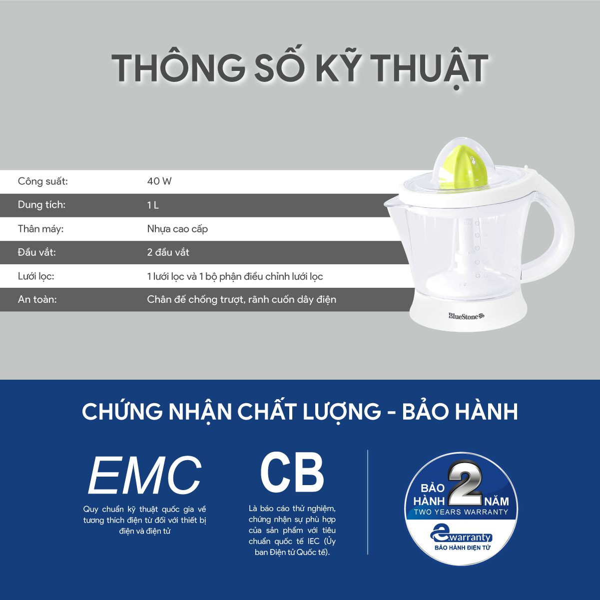 Máy Vắt Cam BlueStone CJB-1129 1 Lít 40W Thông tin sản phẩm