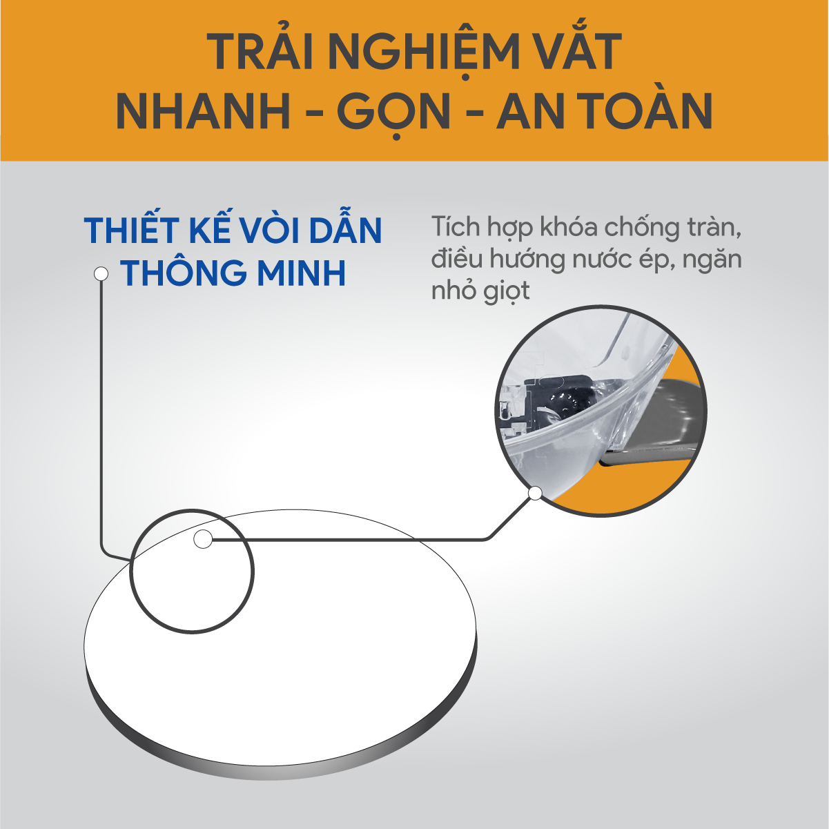 - Thiết kế vòi dẫn thông minh kết hợp với khóa chống tràn