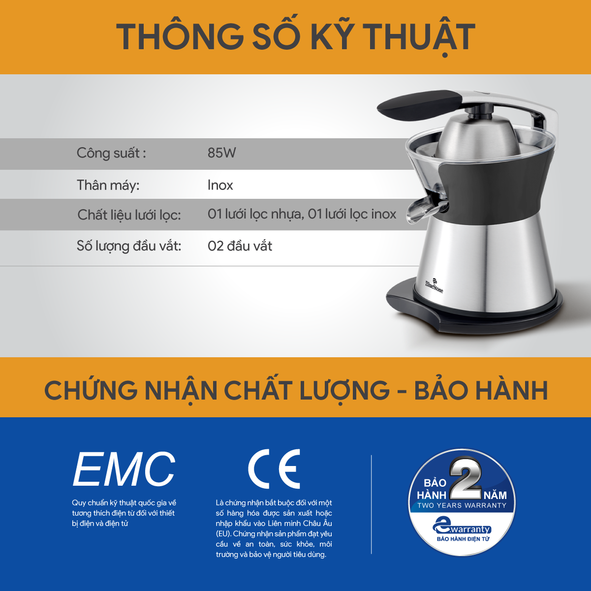 ✨Máy Vắt Cam BlueStone CJB-1173 85W - Hàng Chính Hãng