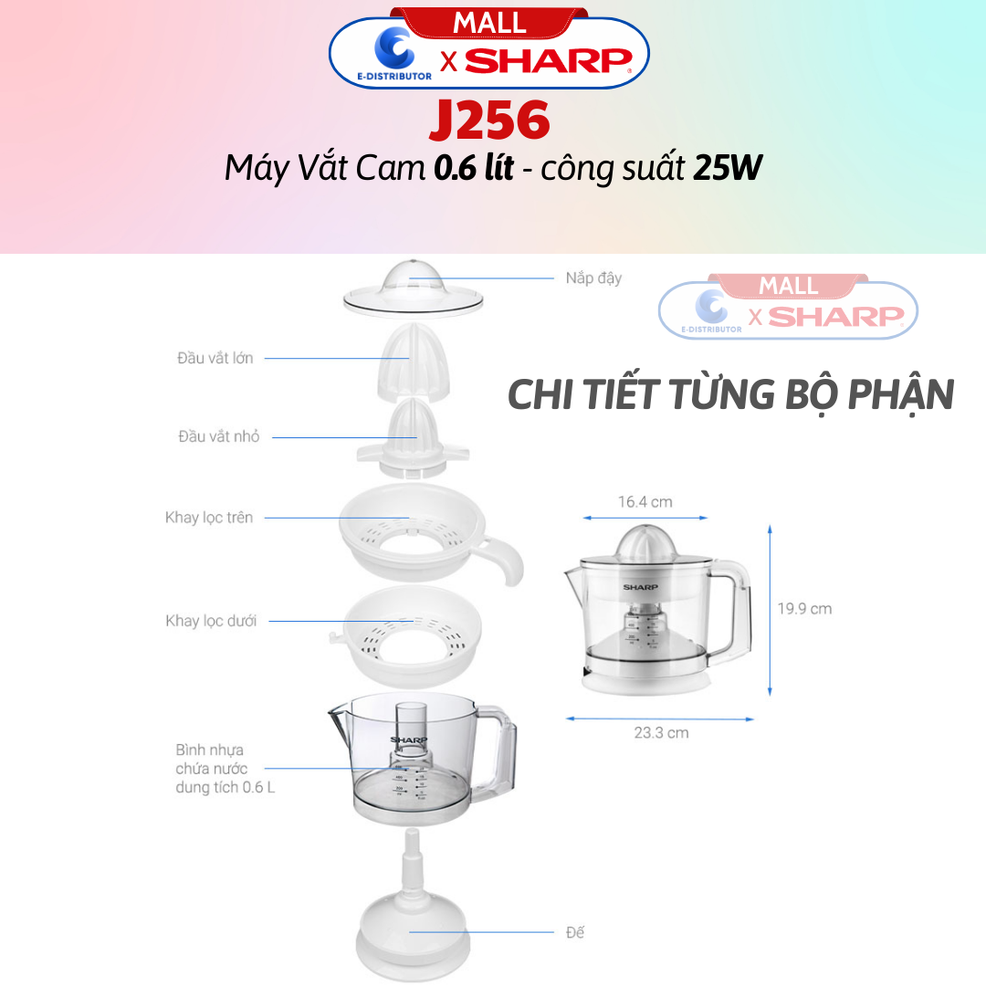 MÔ TẢ SẢN PHẨM 1*Thông số kỹ thuật Máy vắt cam Sharp công suất 25W / EJ-J256-WH