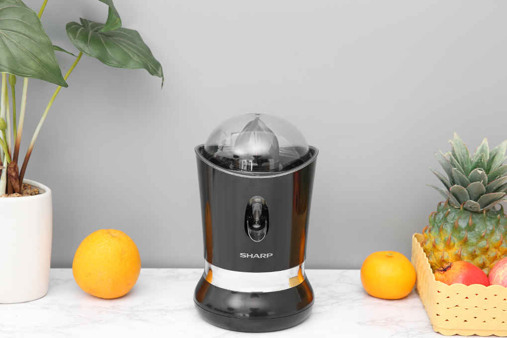 Máy vắt cam Sharp thiết kế gọn nhẹ, màu trắng sáng tươi trẻ, có tay cầm chắc chắn Chuyên dụng để vắt các loại hoa quả họ cam như cam, bưởi, quýt, chanh,… đáp ứng nhu
