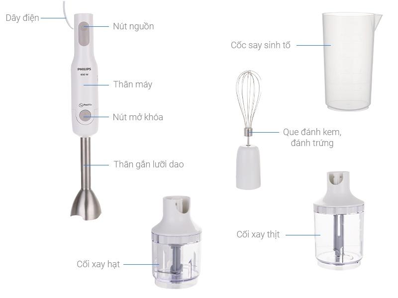 Máy xay cầm tay Philips được trang bị que đánh kem dùng để đánh kem, xốt mayonnaise, bột nhão làm bánh kếp và nhiều món nữa.