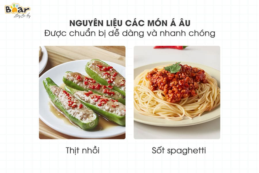 Máy xay thịt Bear hay còn gọi là máy xay thực phẩm đa năng Bear có thể xay được hầu hết các loại thực phẩm như: