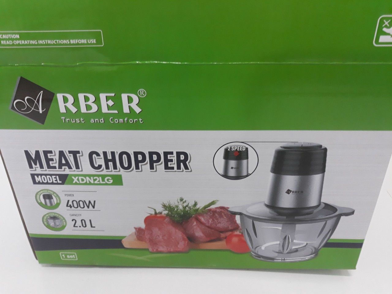 Với công nghệ chế tạo Arber XĐN2LG - Máy xay thịt nhanh chóng và an toàn, vệ sinh thuận tiện. Thiết kế đẹp mắt giúp tôn vinh không gian bếp, vận hành tối ưu, Máy xay đa năng Arber được thiết kế với 2 tốc độ cùng hệ lưỡi dao kép xoáy ngược đẩy thực phẩm xuống đáy bảo đảm không bị tràn ra ngoài. Phần thân trên động cơ được thiết kế bằng inox sang trọng với 3 lớp cách điện bên trong.