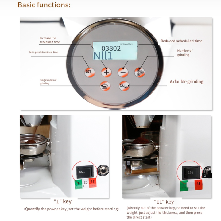 - Máy có bảng điều khiển cơ tích hợp màn hình LCD dễ thao tác. Chỉ bằng một cái chạm nhẹ bạn có thể tùy chỉnh định lượng cafe cho mỗi ly một cách chính xác. Màn hình có hiển thị các thông số một cách rõ ràng. Chất lượng hạt cà phê xay ra đều và mịn nhất