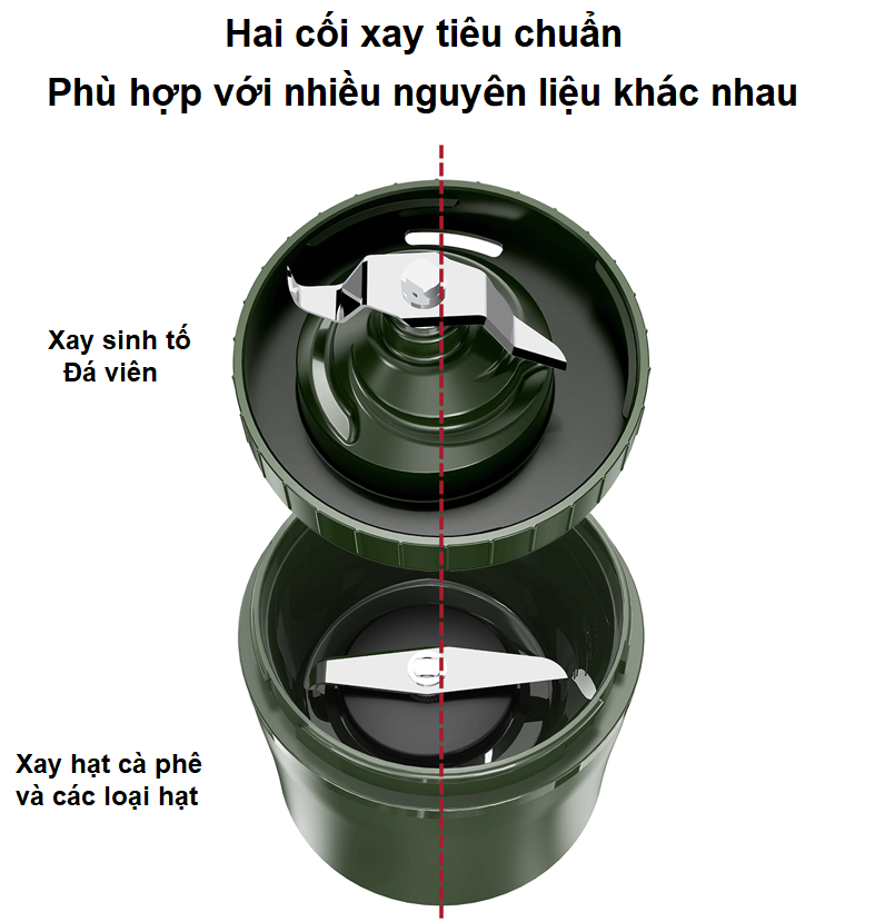 - Tích hợp 2 loại lưỡi xay phù hợp với từng nguyên liệu: Xay hạt cà phê và xay sinh tố – Thiết kế nhỏ gọn 350ml (xay hạt), 450ml (sinh tố), có quai xách nên dễ dàng mang đi – Pin: Lithium cao cấp dung lượng 2000mAh xay đến 15 ly sinh tố 1 lần – Chỉ mất 20 giây sẽ có ngay 1 ly sinh tố thơm ngon với công suất: 70W (245W tối đa) và tốc độ xay: 18000 vòng/ phút – Các thao tác mở và tắt máy đơn giản dễ dàng sử dụng và dễ dàng vệ sinh. – Chế độ an toàn tự động ngắt khi xảy ra sự cố như quá tải, hoặc máy chưa lắp chặt vào thân cốc. – Sản phẩm không chứa chất PBA, an toàn cho người sử dụng