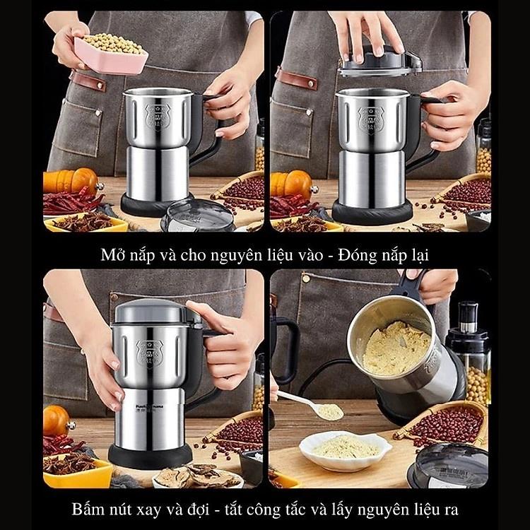 Máy xay hạt khô, xay bột, gia vị cà phê đa năng,công suất 300w,6 lưỡi dao cực bén,chất liệu cối inox