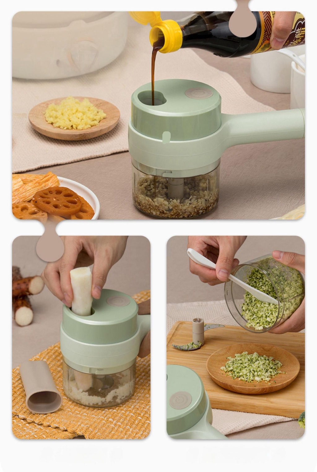 ✨Máy xay mini cầm tay 3 trong 1 (máy xay nghiền tỏi ớt, rau củ, sinh tố;, máy nạo gọt hoa quả; máy cắt sợi, thái lát đồ ăn) dễ dàng vệ sinh - Chính hãng MINIIN (Giao màu ngẫu nhiên)