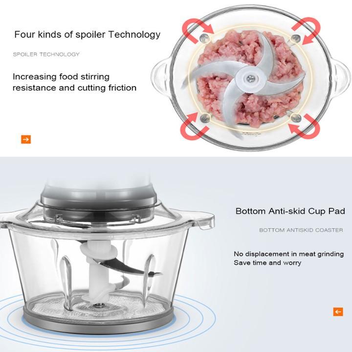 - Chất liệu thép không rỉ có độ bền cao và không độc hại với sức khỏe người dùng. Lưỡi dao sắc bén giúp xay nhuyễn mịn các loại thịt, cối xay thủy tinh dung tích 2L, dễ dàng tháo lắp và lau chùi sau khi sử dụng, đồng thời giúp bạn có thể quan sát thực phẩm bên trong. Xay nhuyễn hiệu quả