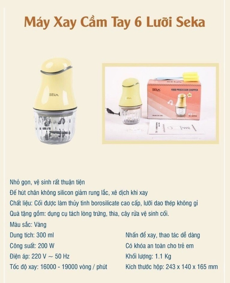 Mua tại TiktokMáy xay cầm tay, Máy xay mini 6 lưỡi SEKA MÔ TẢ SẢN PHẨM THÔNG SỐ KỸ THUẬT - MÁY XAY MINI: