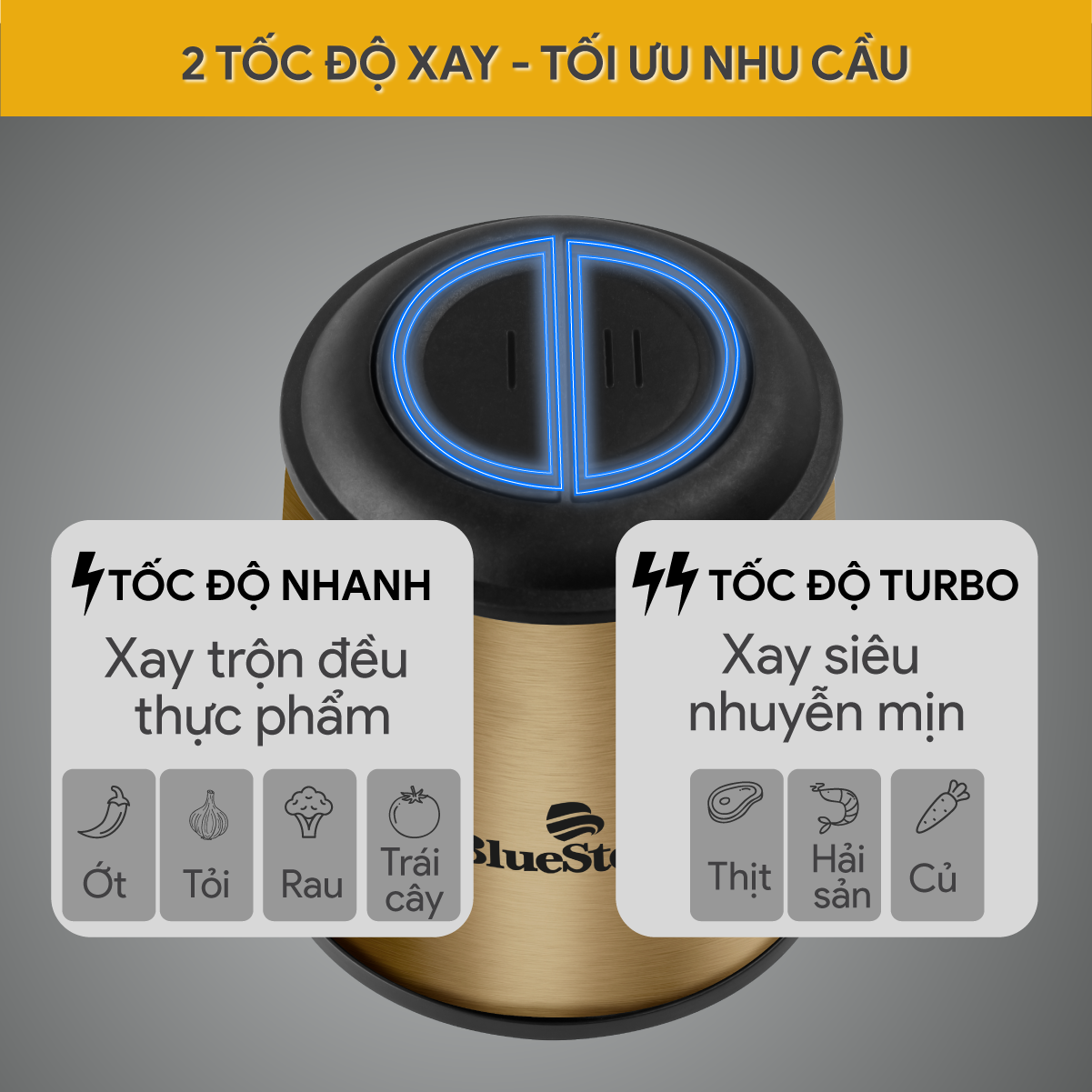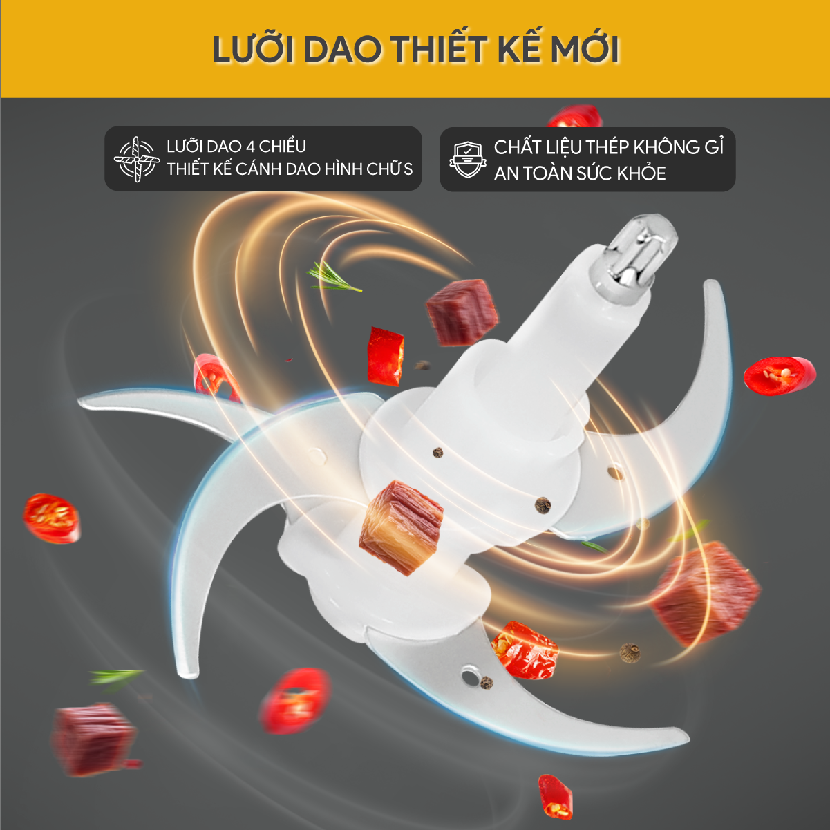 - Tốc độ nhanh: Xay trộn đều thực phẩm phù hợp với xay gia vị (ớt, tỏi), rau…