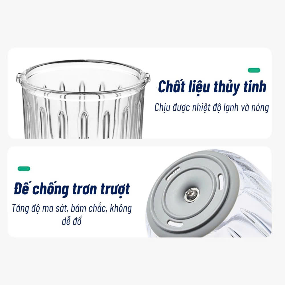 Dung tích cối xay: 300ML – Thủy tinh cao cấp, không BPA