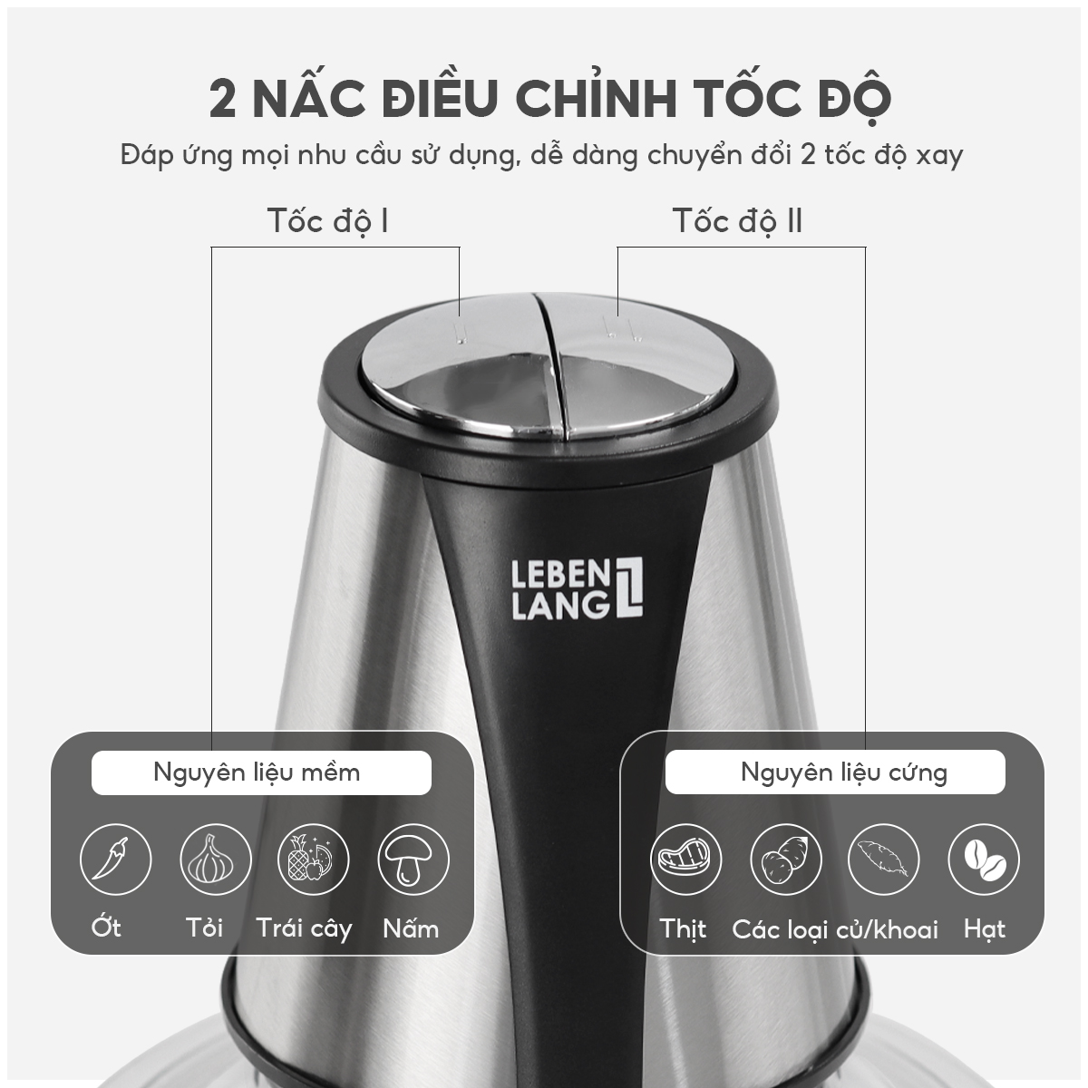 Máy xay thịt đa năng cối thủy tinh, LEBENLANG LBL1930 công suất 400W, dung tích 1200ml, bảo hành 2 năm – hàng chính hãng