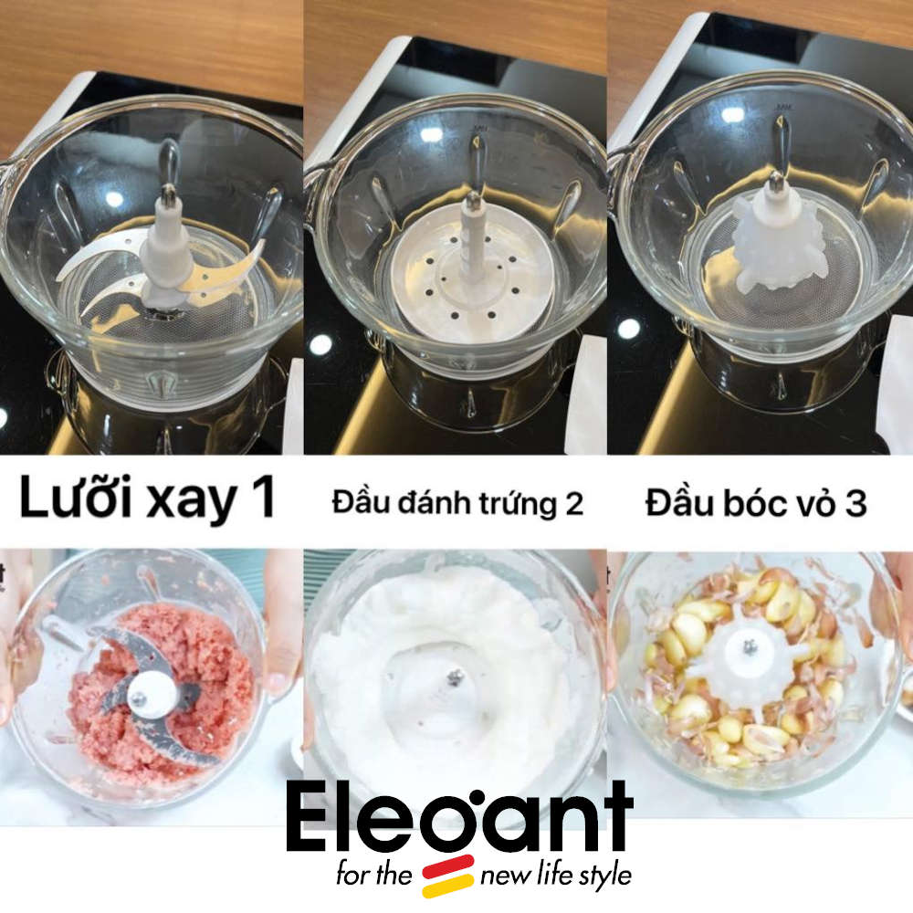 Máy xay thịt đa năng Elegant FC-J08 công suất 350W, cối thủy tinh 1.8L chuẩn Đức - Zalo 0986 588655