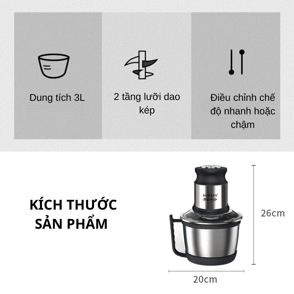 ✨Máy xay thịt đa năng SOKANY SK-7027 dung tích 3L, công suất cao 800W xay nhuyễn mọi thực phẩm, dễ dàng vệ sinh - HÀNG CHÍNH HÃNG
