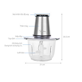 Công suất: 300 W - Chức năng chính: + Xay gia vị: Hành, tỏi, ớt, hạt ngũ cốc +Xay thịt - Cối xay: 1 cối xay thịt 2 L - Chất liệu cối chính: Cối xay thủy tinh - Lưỡi dao: Thép không gỉ - Tốc độ: 2 tốc độ - Tính năng an toàn: Máy chỉ hoạt động khi lắp cối vừa thân máy Máy xay thịt Midea thiết kế màu bạc – inox trẻ trung, dễ dàng bố trí ở mọi nơi trong căn bếp của bạn Đáp ứng nhiều nhu cầu sử dụng, ngoài xay thịt, bạn còn có thể xay tôm cá, các loại hạt, đậu, hành, ớt, tỏi. Cối xay dung tích lớn 2 lít, xay được lượng lớn nguyên liệu chỉ trong 1 lần xay, tiết kiệm thời gian tối đa Làm từ thủy tinh cao cấp, an toàn với sức khỏe, làm sạch đơn giản. Công suất máy xay thịt 300W, lưỡi dao 2 tầng 4 cánh bằng inox 304 sắc bén Chất lượng cao, xay nát thực phẩm nhanh, tránh lãng phí điện năng. Có 2 tốc độ xay thao tác nhẹ nhàng với nút nhấn đặt trên đầu máy, chỉ cần ấn xuống khi cần xay, rất thuận tiện Sử dụng an toàn Máy chỉ hoạt động khi lắp cối vừa thân máy, sau khi tắt máy 2 giây lưỡi dao cũng sẽ ngừng quay đảm bảo máy hoạt động êm ái, an toàn. Lót đế cao su chống trượt cho máy đứng vững vàng, tránh nghiêng, đổ khi xay. Thân máy xay sinh tố, nắp, lưỡi dao, cối xay có thể tháo rời giúp bảo quản, vệ sinh tiện lợi