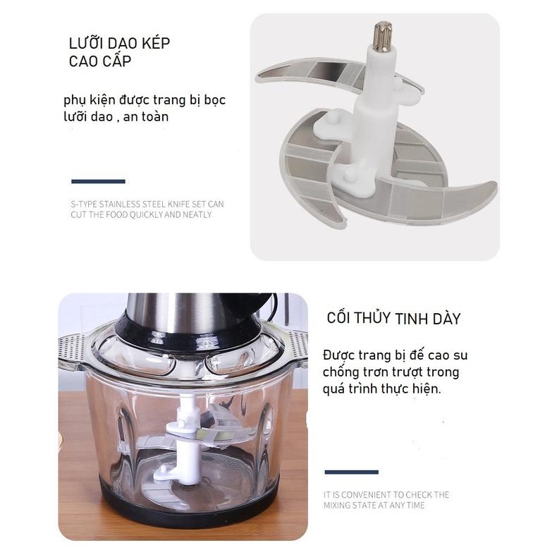 Thông tin sản phẩm Thương hiệu sản phẩm PERFECT Thành phần chi tiết của sản phẩm -Cối thủy tinh dày chịu lực -Đế cao su chống trơn -Lưỡi dao kép thép không gỉ tạo lực cắt mạnh & nhuyễn -Nút nhấn xay 3 chế độ -Quai cầm gắn trên motor giúp cầm nắm không tuột tay, dễ lắp ráp Tính năng sản phẩm Xay thịt, xay cá, xay hạt, xay rau củ, dùng để trộn, nghiền thức ăn, trái cây mềm… có chức năng đánh trứng Thành phần cấu tạo -Phần máy xay motor có động cơ khỏe -Phần cối xay tách riêng, có thể tháo ra chùi rửa. -Phần giữa cối xay thịt là 4 cánh lưỡi dao thép không gỉ, có độ sắc bén. Nguyên lý hoạt động Quy cách sản phẩm 1 máy bọc bao xốp đóng gói trong hộp carton HDSD tiếng việt, phiếu bảo hành Vệ sinh sạch thân máy, lau khô các chi tiết. Để máy tại nơi khô ráo, thoáng mát, tránh nước. Những ưu điểm của sản phẩm -Tiết kiệm thời gian chế biến -3 chế độ xay: mạnh, nhẹ, đánh trứng -Giá thành rẻ -Lưỡi dao sắc bén bọc miếng nhựa bảo vệ tay -Kiểu dáng gọn đẹp Thông số kỹ thuật -Công suất: 300W -Trọng lượng: 2.4 kg -Điện áp: 220V ~ 50Hz -Dung tích: 2 lít Bảo hành 12 tháng