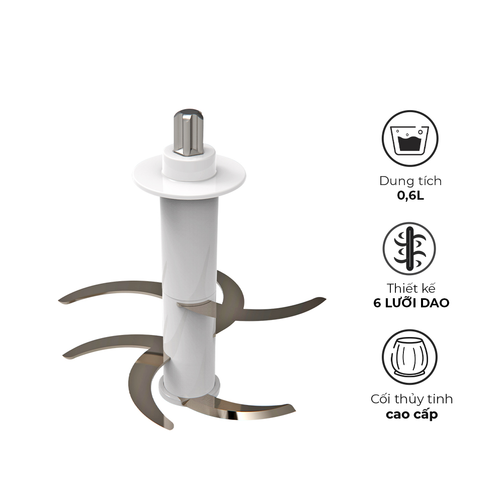 - Thiết kế 6 lưỡi dao kép được phân bổ 3 tầng giúp xay nhuyễn và mịn thức ăn.