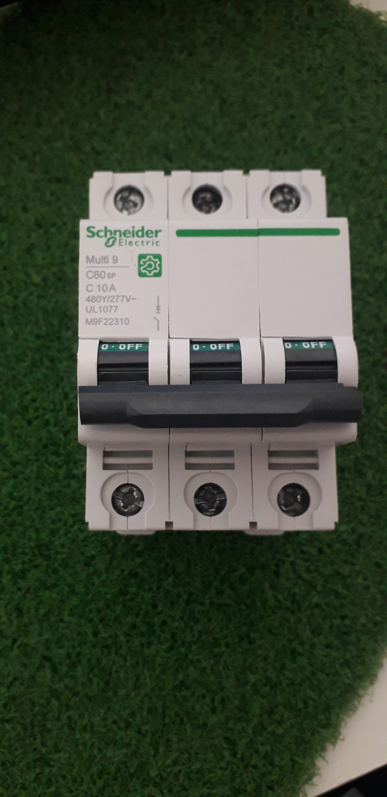 MCB M9F22310 Multi9 C60SP, 3P, 10A, C Curve, 10kA (UL1077), 10kA (IEC/EN 60947-2) Tên sản phẩm: Multi9 C60 Loại sản phẩm hoặc thành phần: Bộ ngắt mạch thu nhỏ Tên viết tắt của thiết bị: