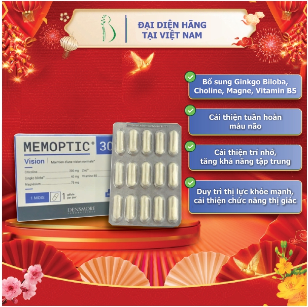 Memoptic bổ sung Ginkgo biloba, choline, magiê, vitamin B5 giúp cải thiện tuần hoàn máu não, giúp tăng cường sự tổng hợp dẫn truyền thần kinh, bảo vệ thần kinh, giúp duy trì và cải thiện trí nhớ, tăng khả năng tập trung.
