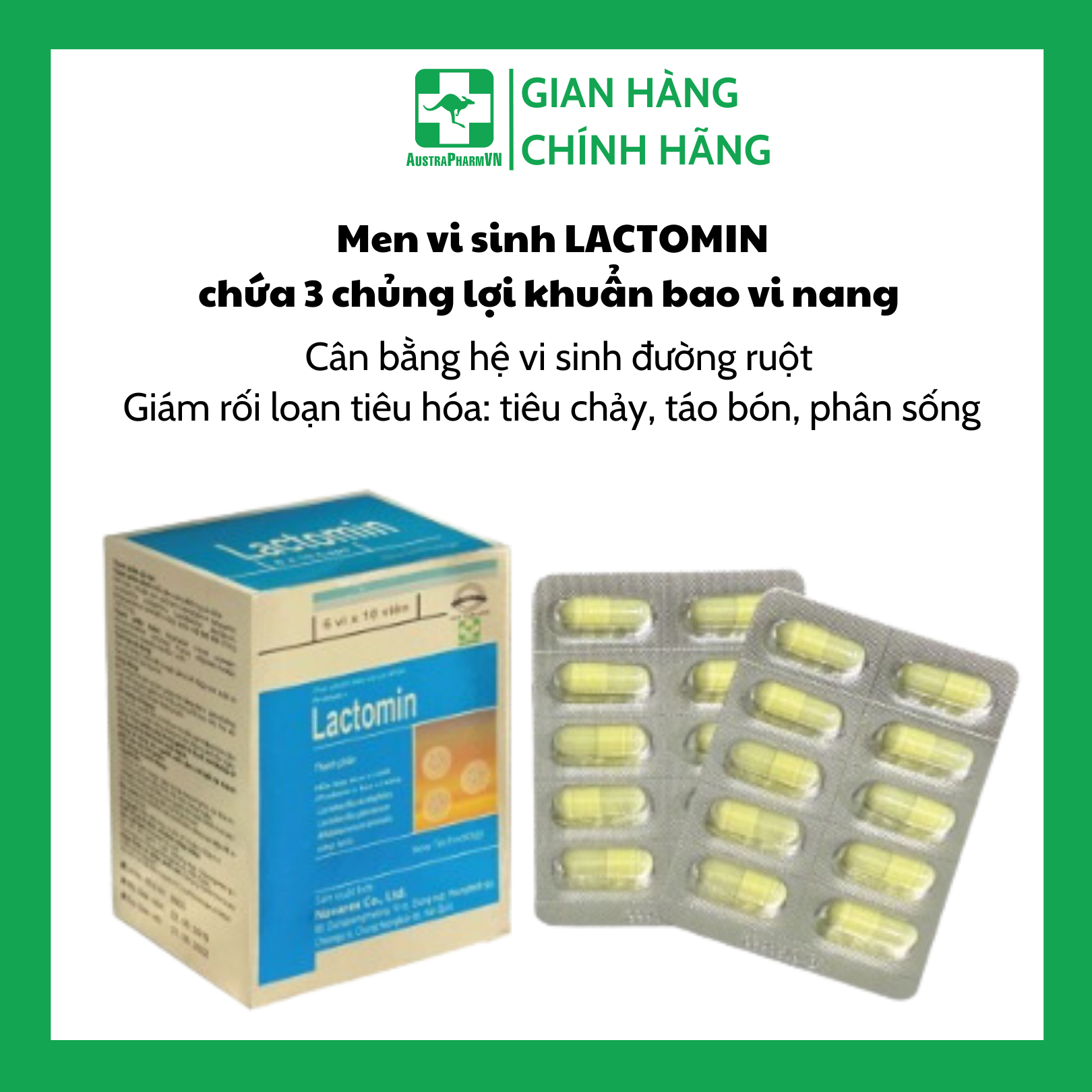 ✨Men vi sinh LACTOMIN (viên nang) bổ sung 3 loại lợi khuẩn có ích được bao vi nang, hỗ trợ giảm tiêu chảy, táo bón, phân sống, cân bằng hệ vi sinh đường ruột.