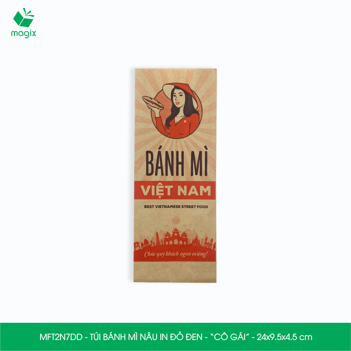 • MFT2N7DD - Túi bánh mì nâu in đỏ đen - "Cô gái"